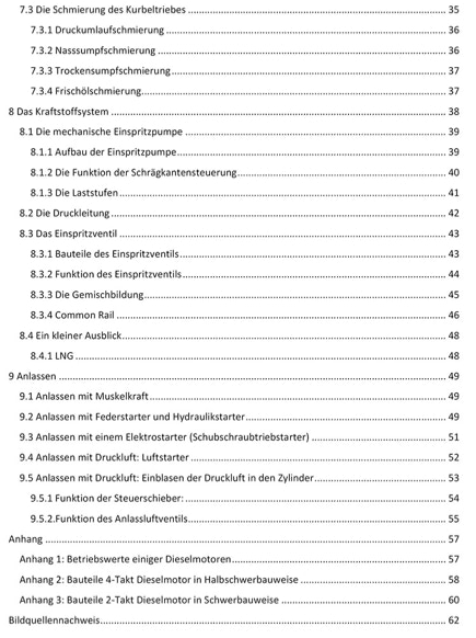 Beschrieben werden die Unterscheidungsmerkmale, die Fachausdrücke und die Bauteilgruppen von Dieselmotoren. Ferner werden der Abgasturbolader, das 2-Takt- und das 4-Takt-System erklärt.